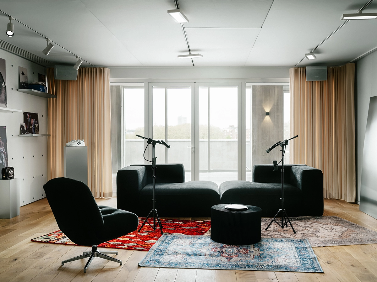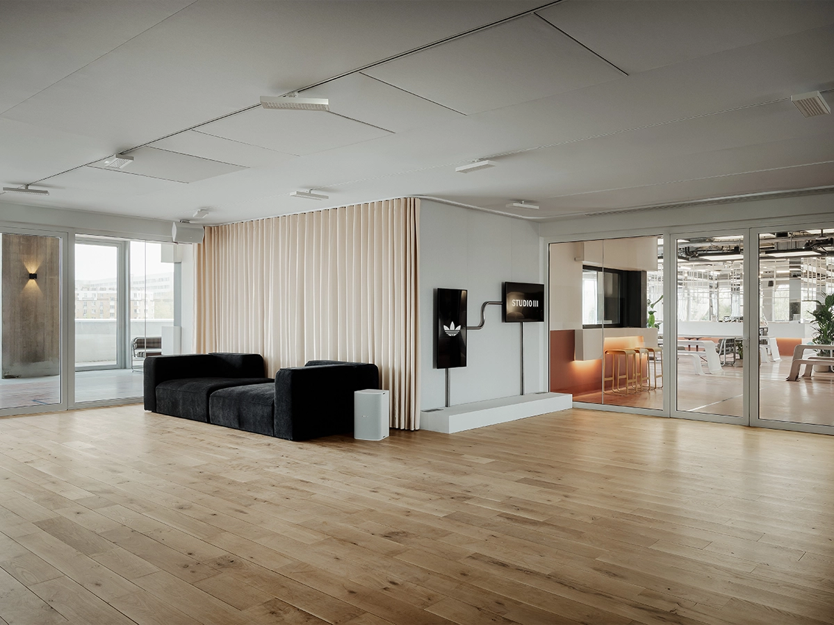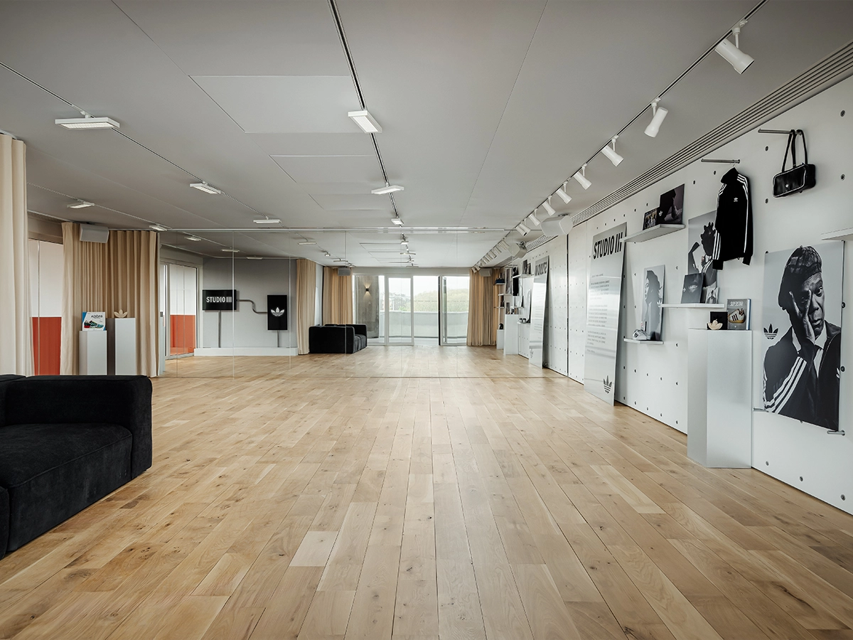 Sur 140 m², accessibles cinq jours sur sept, le Studio III se divise en deux espaces complémentaires. Le premier est orienté vers les acteurs associatifs locaux, un tiers-lieu pensé pour le travail collaboratif, les ateliers de formation et le soutien scolaire. Le second est un espace culturel et artistique ouvert aux clients, aux collectifs locaux et aux partenaires créatifs de la marque, accessible via adiClub, le programme de fidélité adidas.