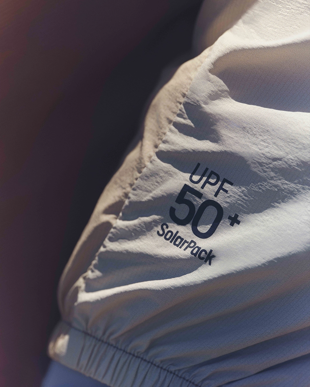La veste SolarPack incarne cette philosophie. Pliable dans sa capuche, elle répond à une exigence de praticité tout en conservant des propriétés techniques élevées. Autour de cette pièce centrale, la collection se déploie avec des essentiels du quotidien, du t-shirt au pantalon, intégrant des technologies de régulation thermique et de séchage rapide. Une ligne d’accessoires complète l’ensemble, traduisant une volonté de proposer une protection globale, du corps aux extrémités.