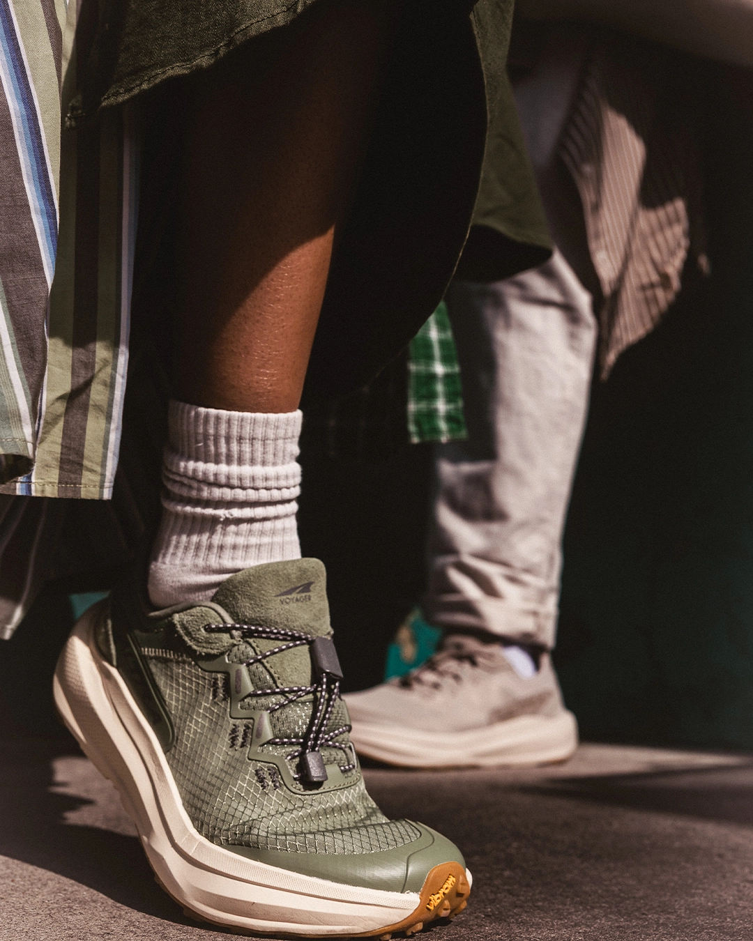 Derrière son design épuré, la Voyager intègre des éléments directement issus du running. La semelle intermédiaire Altra EGO P35 apporte un amorti léger et réactif, conçu pour offrir une sensation fluide sous le pied. Cette base technique est renforcée par une semelle extérieure Vibram XS Trek Evo, reconnue pour son accroche sur différents types de surfaces, un choix pertinent pour un usage urbain où les terrains varient constamment. La tige en mesh respirant, associée à des renforts sur l’avant du pied, assure à la fois légèreté et durabilité.