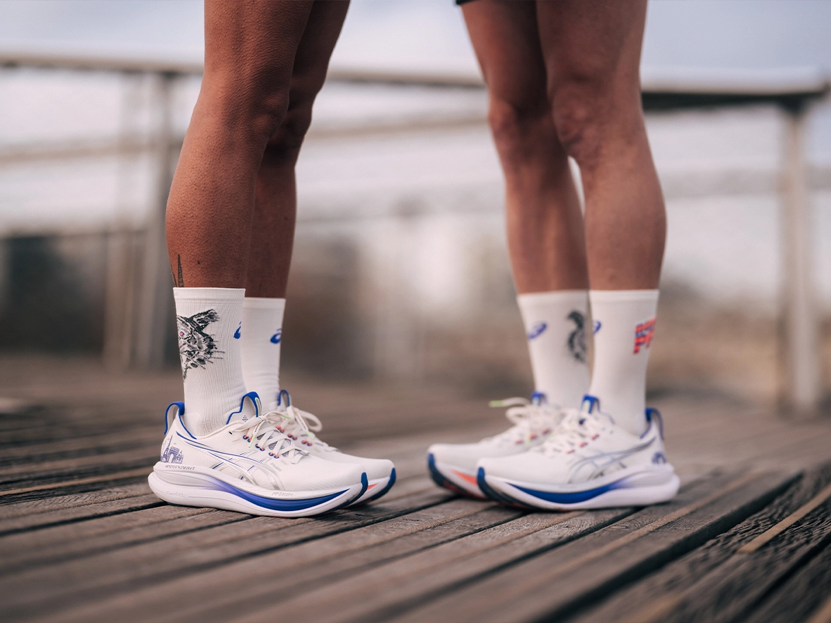 Partenaire officiel du Marathon de Paris jusqu’en 2031, ASICS a pris l’habitude de marquer l’événement avec une capsule dédiée à la capitale. Pour l’édition 2026, la marque japonaise mise sur sa GEL-NIMBUS 28 (l’un de ses modèles les plus aboutis sur le plan du confort) pour porter l’identité parisienne autrement qu’avec un simple logo tricolore.