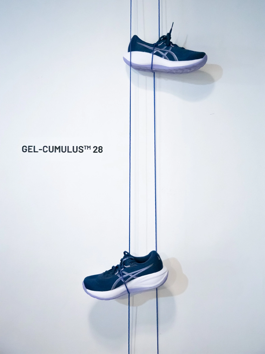 Au cœur de l’expérience, la GEL-CUMULUS™ 28 a été dévoilée dans un coloris exclusif réservé à INTERSPORT. Positionnée comme l’un des modèles confort de référence chez ASICS, cette nouvelle version s’inscrit dans la continuité d’une gamme appréciée pour sa polyvalence et son accessibilité, tout en intégrant des évolutions techniques notables. La semelle intermédiaire FF BLAST™ MAX promet un amorti plus doux et un retour d’énergie optimisé, tandis que la technologie PureGEL™ vise à améliorer l’absorption des chocs, un point clé pour les sorties longues et les phases de récupération.