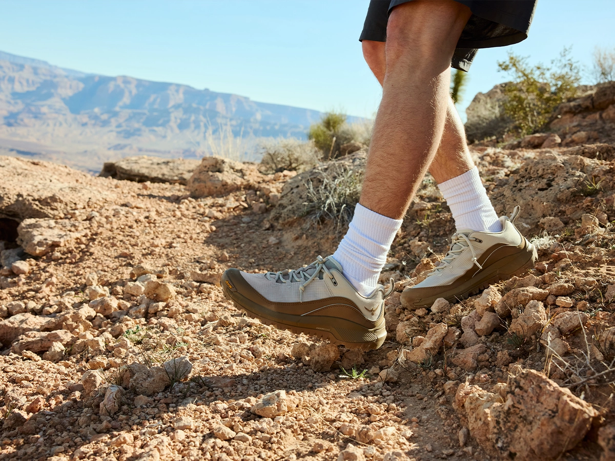 La chaussure N45 Max Low prolonge cette approche. Conçue dans les mêmes codes esthétiques, elle intègre des technologies orientées performance, avec une semelle intermédiaire en mousse supercritique et une semelle extérieure Vibram Megagrip, pensée pour garantir adhérence et stabilité sur différents types de surfaces. Le système de laçage rapide et la possibilité de ressemelage traduisent une volonté de durabilité et d’adaptabilité dans le temps.