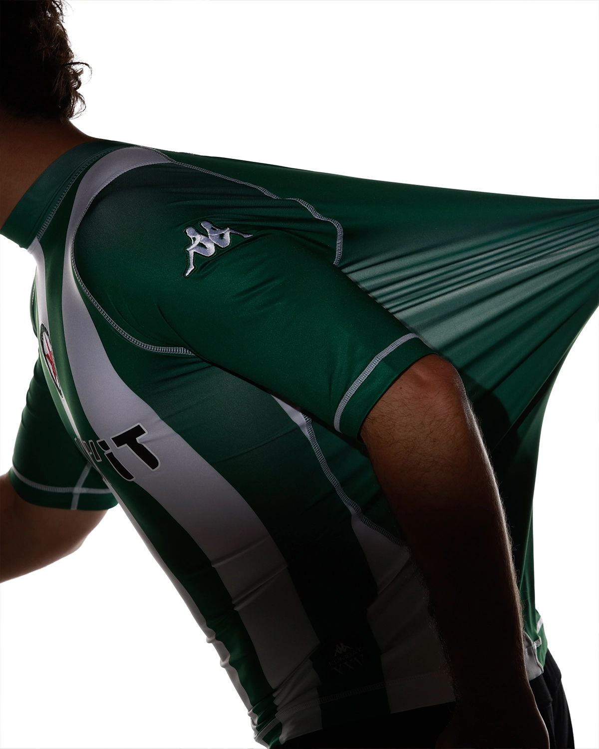 Le design reprend les rayures emblématiques du club, dans un vert profond contrasté de blanc, fidèle à l’ADN du Red Star. Mais derrière cette apparente simplicité, le Kombat™ XXV cache une conception de pointe : un tissu ultraléger et hyperélastique, composé à 92 % de polyester recyclé et 8 % d’élasthanne. Un clin d’œil à la philosophie « Stop Stopping » de Kappa, qui symbolise l’énergie et la persévérance dans le sport moderne.