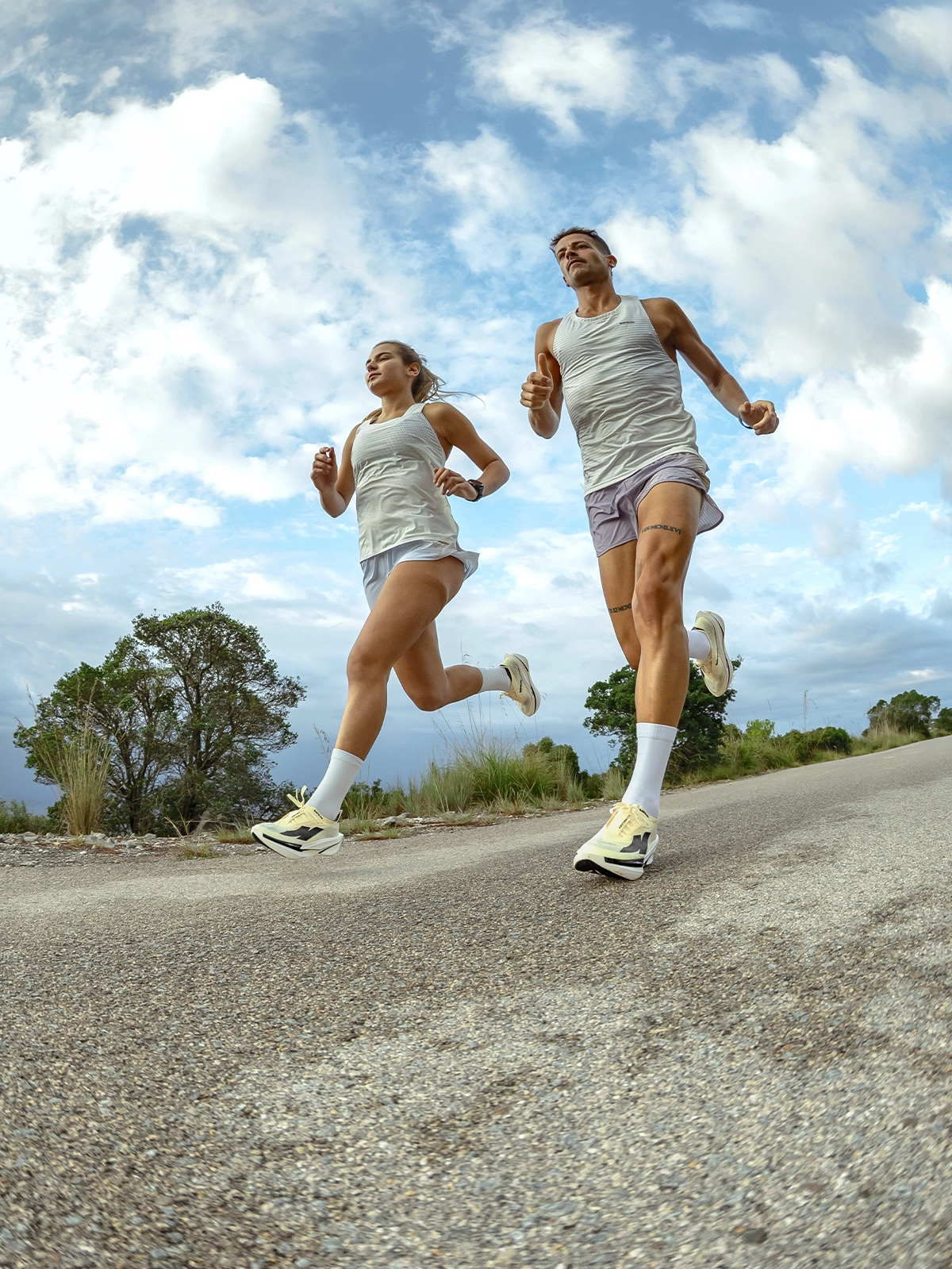 Le confort n’a pas été sacrifié au profit de la performance. La tige en 3D Knit fusionne mesh, col et languette en une structure sans couture, pensée comme une seconde peau. Associée à une languette fixe et des lacets texturés, cette conception garantit une répartition homogène de la pression et élimine les points de friction même après plusieurs heures de course. La semelle de propreté de 3 millimètres en SCF M-TPU complète le dispositif d’amorti sans ajouter de souplesse superflue ni compromettre la stabilité générale de la chaussure.