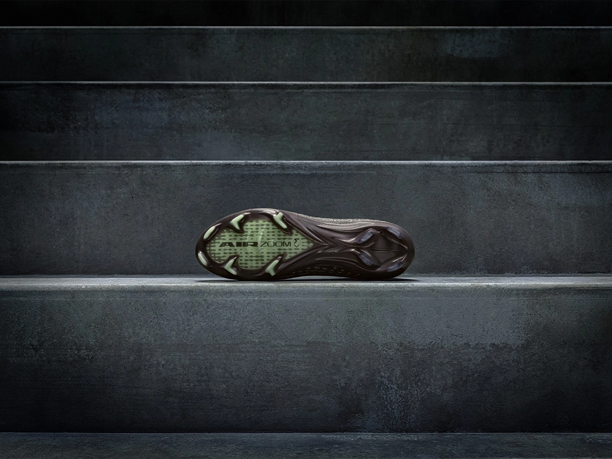 Visuellement, le lien est immédiat. Les graphismes reprennent l’ADN du TN original, inspiré à l’époque des gouttes d’eau sur un pare-brise, réinterprété ici dans un contexte football. La signature de Kylian s’intègre aux détails, et le coloris (Plum Eclipse, Metallic Silver, Barely Volt) joue sur des contrastes francs, pensés pour être aussi percutants à la télévision que sur le terrain. Les finitions en TPU argent métallisé ajoutent une texture brillante qui tranche avec les codes habituels du crampons de compétition.
