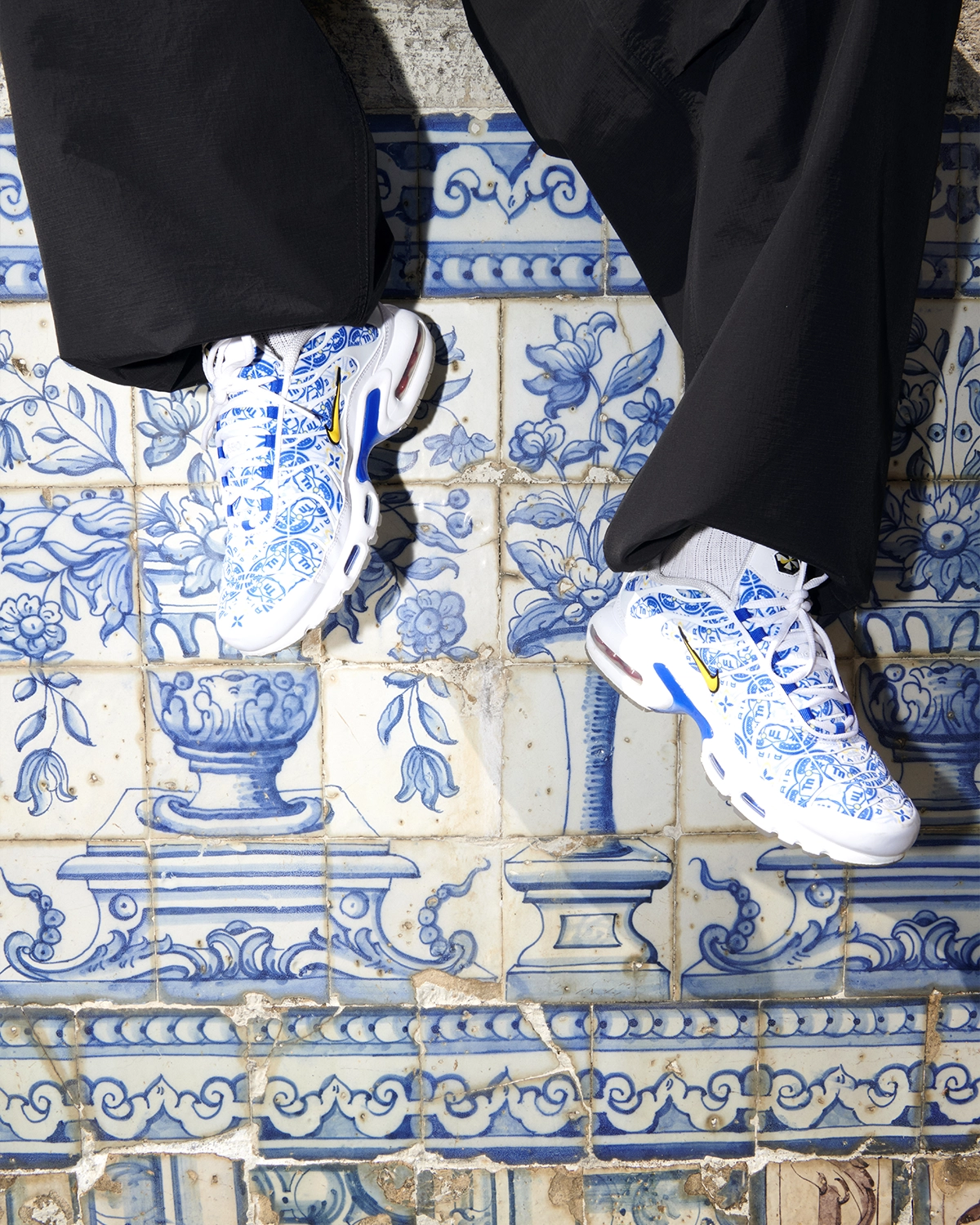 Dans les rues de Lisbonne, la TN est bien plus qu’une basket. Elle est une pièce d’identité. Adoptée par les jeunes comme par les anciens, portée dans les quartiers populaires comme dans le centre-ville, elle fait partie du paysage quotidien. Pour cette édition exclusive, Nike et Foot Locker plongent dans les symboles forts de la ville. Les azulejos (ces carreaux colorés omniprésents sur les façades) inspirent le motif principal de la tige, tandis que la semelle rend hommage à la calçada portuguesa, ce pavage en pierre noire et blanche qui habille les trottoirs lisboètes. Sur la languette, un clin d’œil aux motifs historiques, et juste au-dessus des lacets, un marquage “Lisbon” vient affirmer fièrement l’ancrage local.