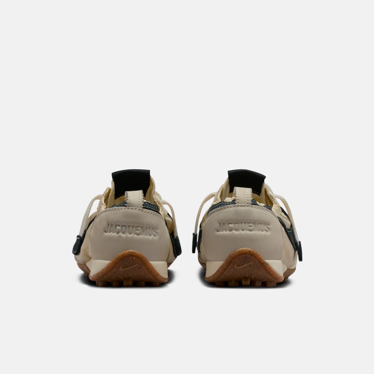À l’origine, la Moon Shoe était un prototype de course doté d’une semelle gaufrée née de l’expérimentation d’un gaufrier de cuisine. Elle n’a jamais été commercialisée mais son ADN a façonné l’histoire de Nike, donnant naissance aux Waffle Trainer, premiers grands succès de la marque. Plus de cinquante ans plus tard, Jacquemus et Nike offrent une lecture contemporaine de ce modèle fondateur, dévoilé pour la première fois lors du défilé printemps 2025 du créateur.