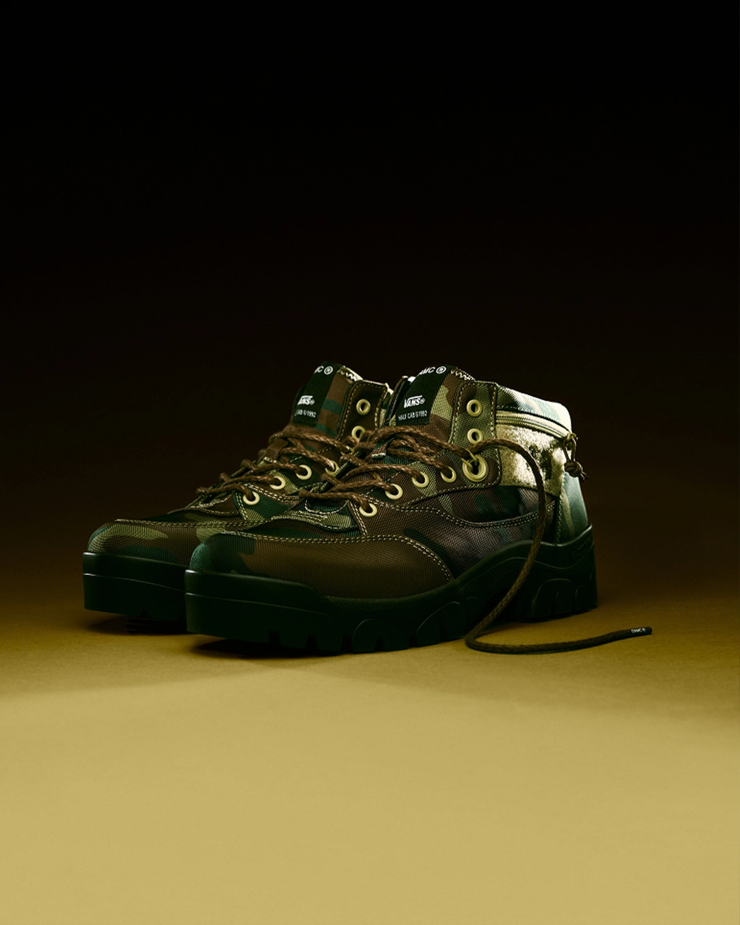 La Half Cab SP Boot, elle, s’attaque à un monument. Le modèle original de 1992 est ici réinterprété avec une approche presque tactique : pochette zippée intégrée, empiècements en velcro avec broderie, patch d’archive amovible. La semelle Vibram et la mousse Sola Foam ADC complètent une construction pensée pour le mouvement. Ce n’est pas un simple lifting, c’est une relecture assumée qui respecte l’esprit du modèle tout en le projetant dans une autre dimension.