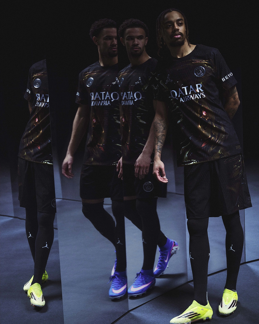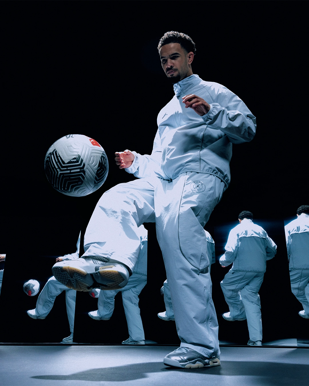 Pour accompagner ce lancement, Jordan Brand, le PSG et SNIPES organiseront le 11 mars au Palais de Tokyo une installation immersive baptisée « Chrome Cage ». Dans un cube miroir inspiré de l’esthétique du maillot, les participants seront invités à relever un défi technique balle au pied pendant trente secondes, avec la possibilité de filmer leur performance. Deux participants repartiront avec l’ensemble de la collection.