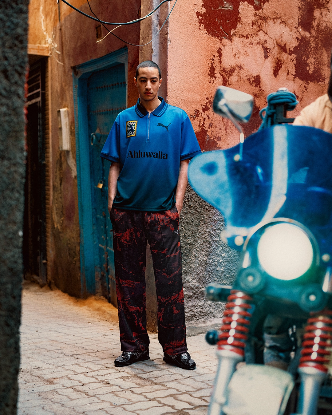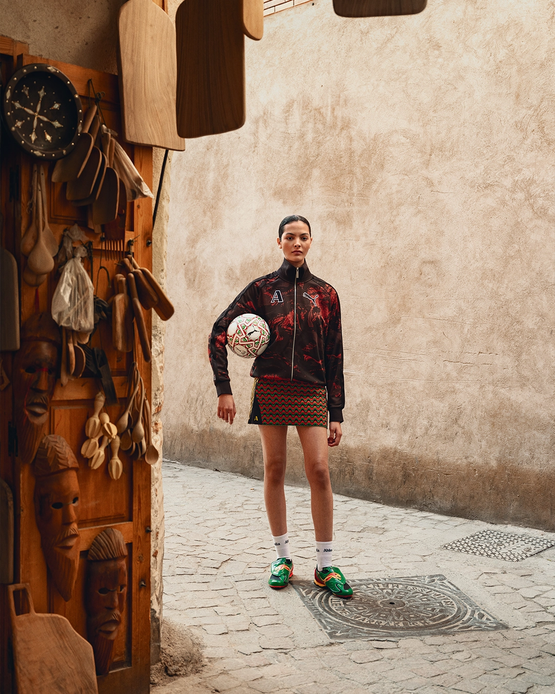 Pour ce deuxième volet de leur collaboration, Ahluwalia s’inspire directement des terrains, des tribunes et des communautés de fans au Maroc, au Nigeria et dans d’autres scènes footballistiques africaines. À travers ses recherches visuelles et historiques, elle observe les multiples façons dont le football structure les identités locales, tout en créant un sentiment d’unité global. L’héritage des archives PUMA nourrit également le projet, permettant une relecture contemporaine de silhouettes sportives emblématiques.