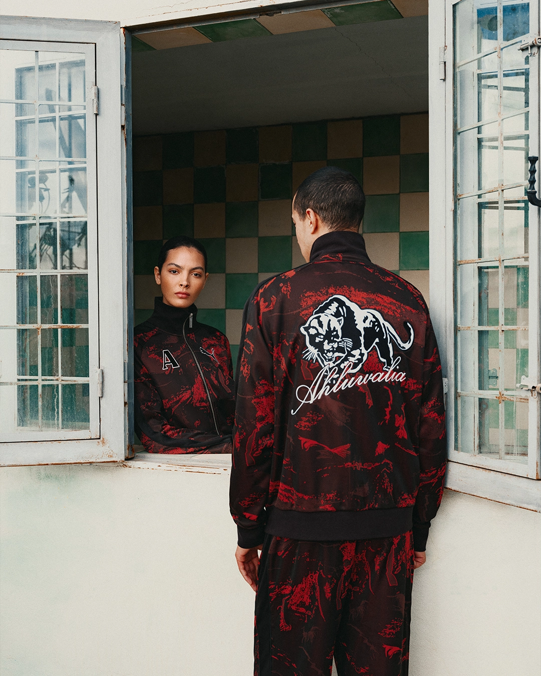 La collection revisite plusieurs pièces phares de la marque, dont le T7 tracksuit et la silhouette V-S1. Les ensembles se distinguent par des imprimés all-over graphiques évoquant l’énergie d’un stade en ébullition, ainsi que par des jeux de textures et de couleurs inspirés des codes visuels du football africain. Certaines pièces rendent hommage à la culture nigériane à travers des détails verts texturés et des broderies affirmées, tandis que d’autres misent sur des dégradés plus audacieux ou des compositions graphiques oversize.