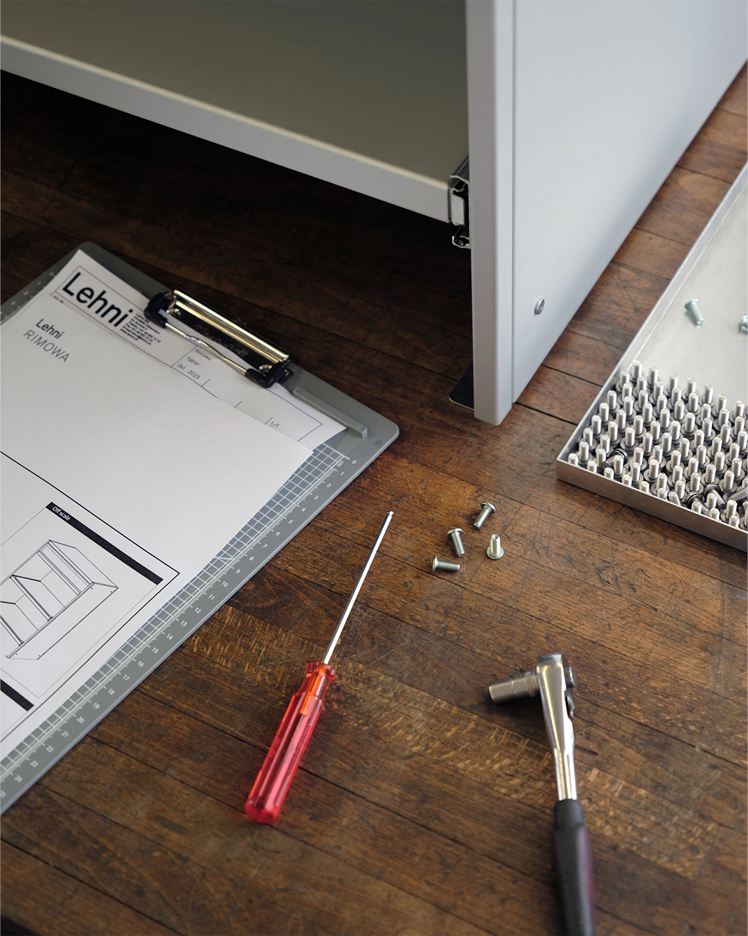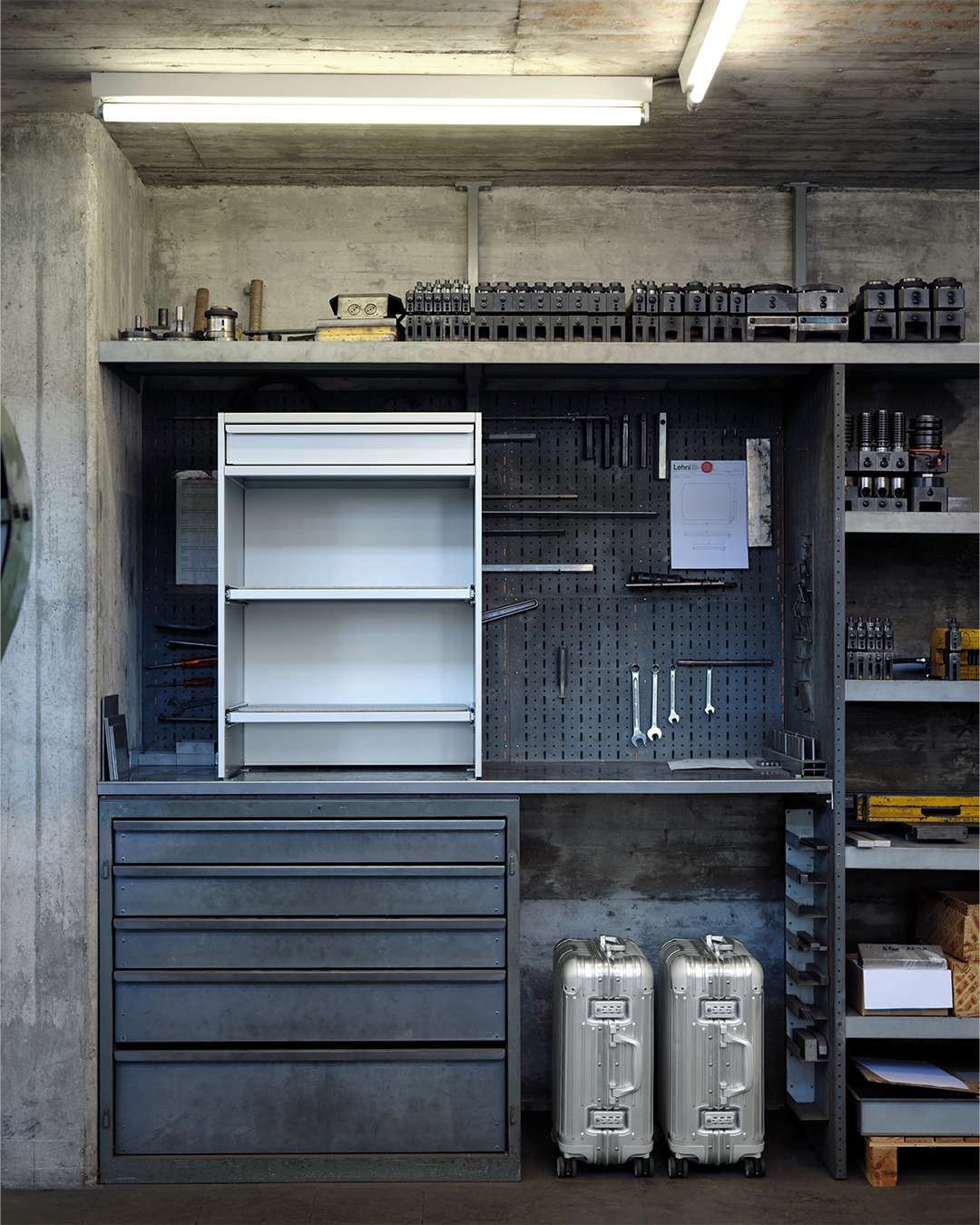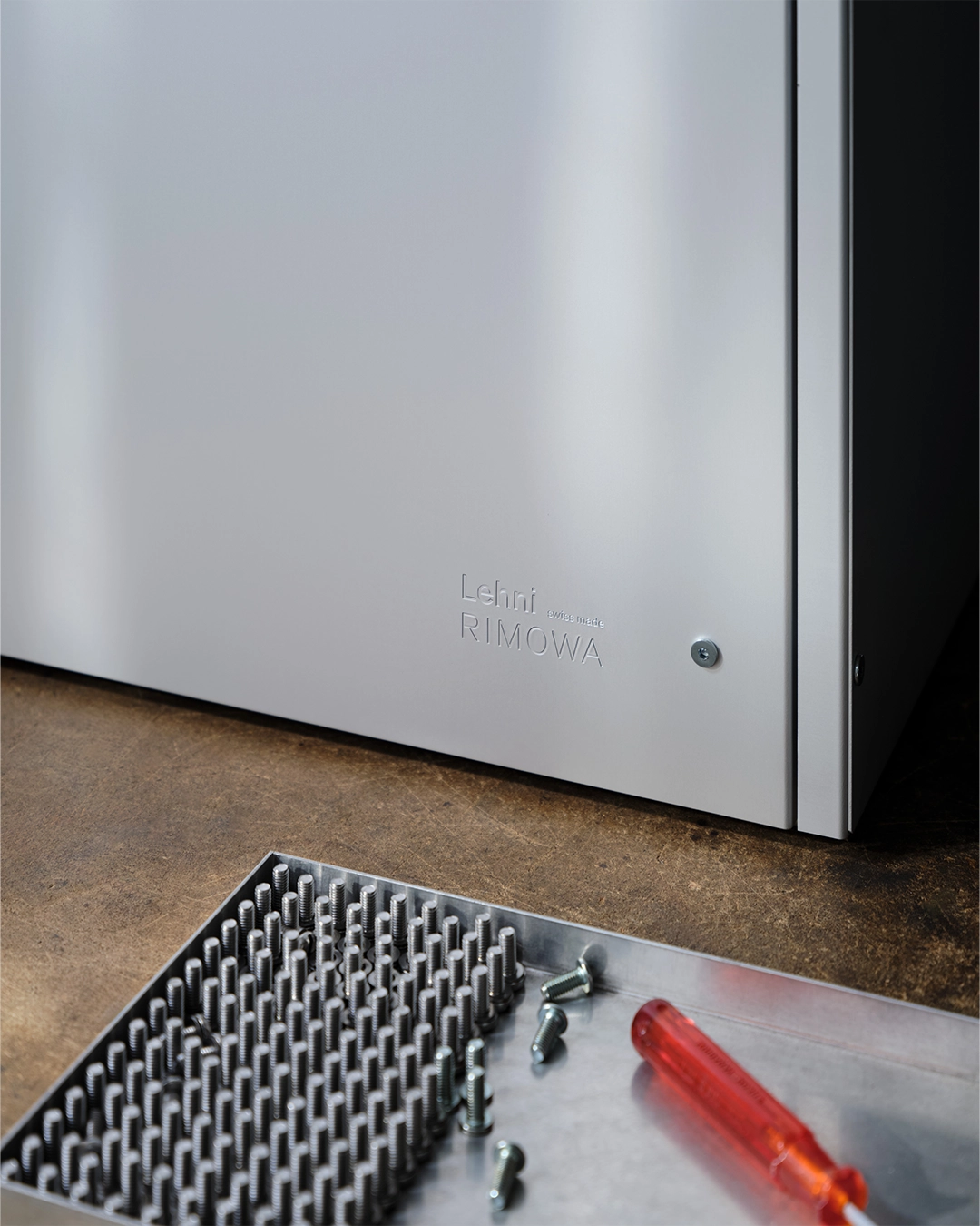 Le projet repose sur une rencontre évidente entre deux héritages. D’un côté, RIMOWA et son travail historique de l’aluminium appliqué au voyage. De l’autre, Lehni, pionnier du mobilier modulaire en aluminium depuis les années 1920. Pour la première fois, la marque suisse adapte son système pour répondre à un besoin précis : organiser et protéger des bagages tout en les mettant en valeur. Chaque pièce est fabriquée à la main à Zurich, avec une attention particulière portée aux finitions, notamment des surfaces en feutre mat anti-rayures conçues pour préserver les valises.