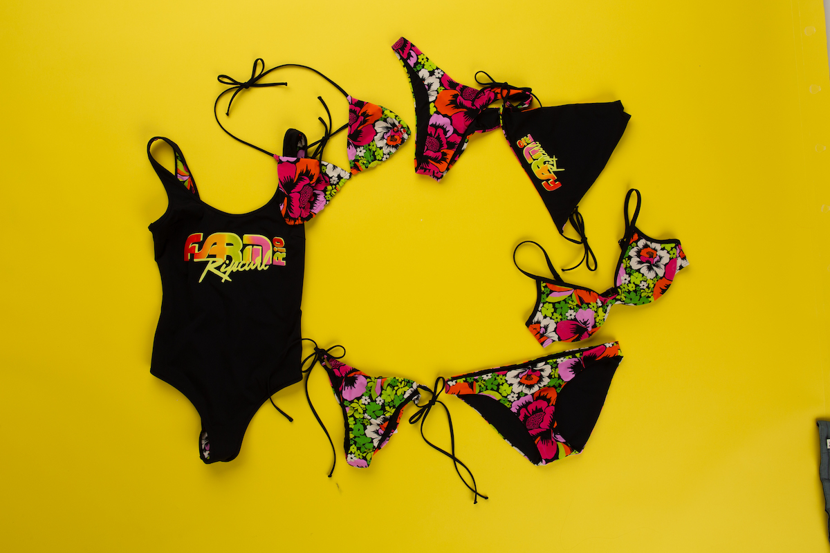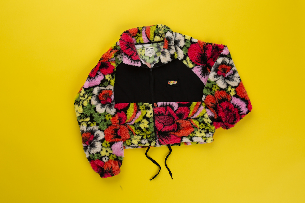 L’ADN des deux maisons se retrouve pièce par pièce : les imprimés floraux exubérants de FARM Rio s’installent sur la technique de Rip Curl. Des combinaisons néoprène estivales, des bikinis réversibles, une chemise à rayures fluo, une mini-robe ou encore des accessoires de plage. Tout est pensé pour être aussi efficace dans l’eau qu’en dehors. L’imprimé signature développé pour la collaboration traverse l’intégralité de la collection, créant une cohérence visuelle forte entre les pièces.