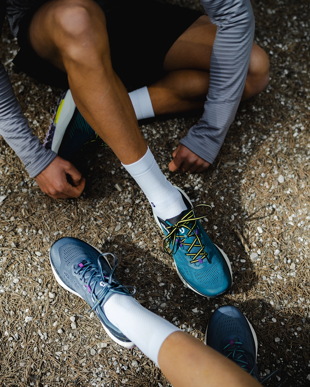 Première du genre chez SCOTT, la Pursuit Gravel ne cherche pas à inventer un nouveau segment, mais à fluidifier la pratique. Son ambition : accompagner les coureurs sur tous les terrains sans compromis. Pour cela, la marque suisse a misé sur un équilibre précis entre innovation et adaptabilité. On retrouve la semelle intermédiaire ER3, évolution du système ER2, pensée pour optimiser le déroulé du pied et offrir un soutien médio-latéral inédit. Résultat : une foulée naturellement guidée, stable et fluide.