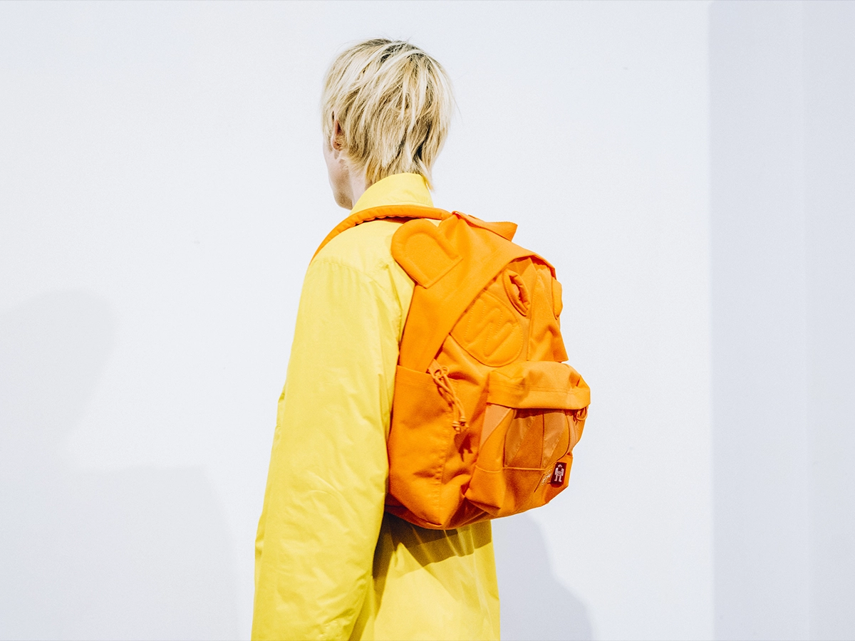 Avec le Walter Pak’r, cette vision revient sous une nouvelle forme. La base du sac reste l’emblématique Padded Pak’r d’Eastpak, transformé par les codes visuels du créateur. Oreilles pointues, nez triangulaire et sourire denté viennent donner au sac une personnalité presque cartoon, fidèle à l’univers graphique du designer. La collection se décline en trois coloris monochromes affirmés : orange, bleu et vert militaire. Chaque version adopte une fermeture éclair métallique ton sur ton et arbore l’étiquette Walterman, signature emblématique du créateur belge. Cette collaboration prolonge également une histoire entamée en 2014 dans le cadre du projet Artist Studio d’Eastpak, une initiative menée avec Designers Against Aids qui invitait artistes et designers à transformer les sacs de la marque en pièces uniques. Van Beirendonck y avait déjà revisité le Monster Backpack dans une version premium en cuir, devenue depuis une pièce de collection.